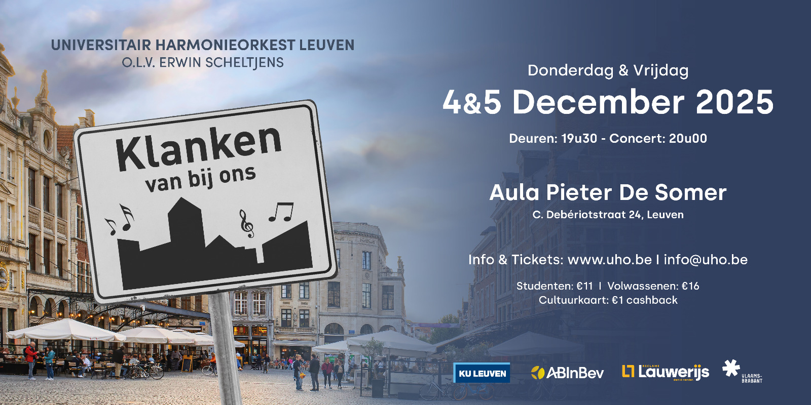 Het Universitair Harmonieorkest onder leiding van Erwin Scheltjens verwelkomt u met veel